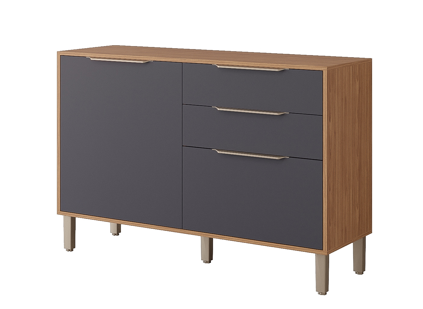 Balcão Divina Esplendida 120 2P2G, Côr Freijó/Titanium, da MGM Moveis, Medidas: Alt 0,87m Larg 1,20m Prof 0,47m Peso 40,7Kg - 1 Volume - Estrutura 100% MDF 15mm - Fundo HDF 3mm, 2 Portas de Bater com Dobradiças Metálicas Slow Motion, 2 Gavetas com Corrediças Telescópicas, 1 Prateleira Interna, Puxadores ABS, Pés Plásticos Reguláveis de PVC e Acabamento em Pintura UV Semi-Brilho - Fosco. OBS.: FAÇA O COMBO COM 2 PEÇAS COMPRANDO O AÉREO DIVINA 120 2 PORTAS.