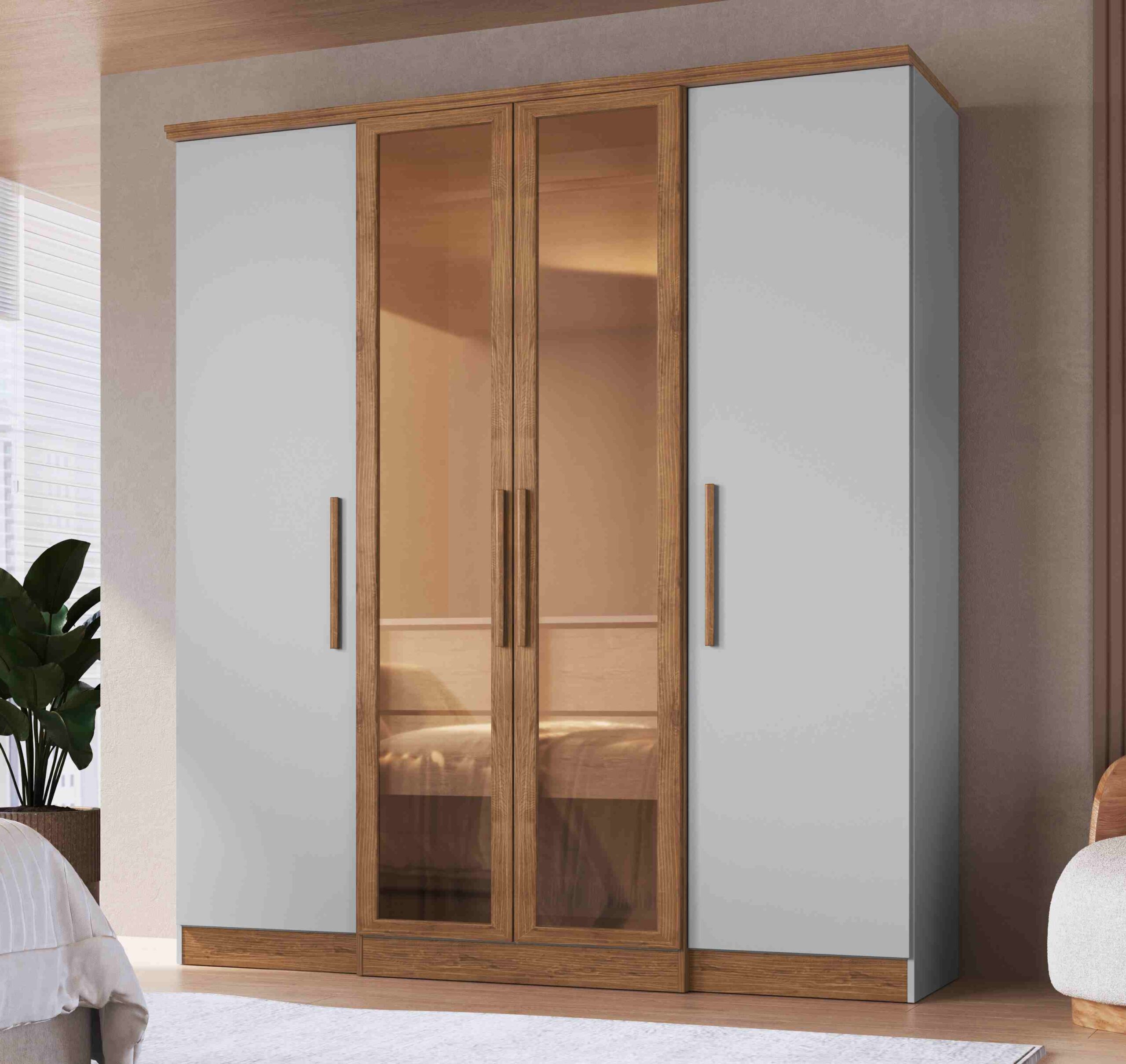 Disponível - 29075.Roupeiro Genebra 4P2G sendo 2 Portas com Vidro Reflecta Lunar.Nogueira Doriple