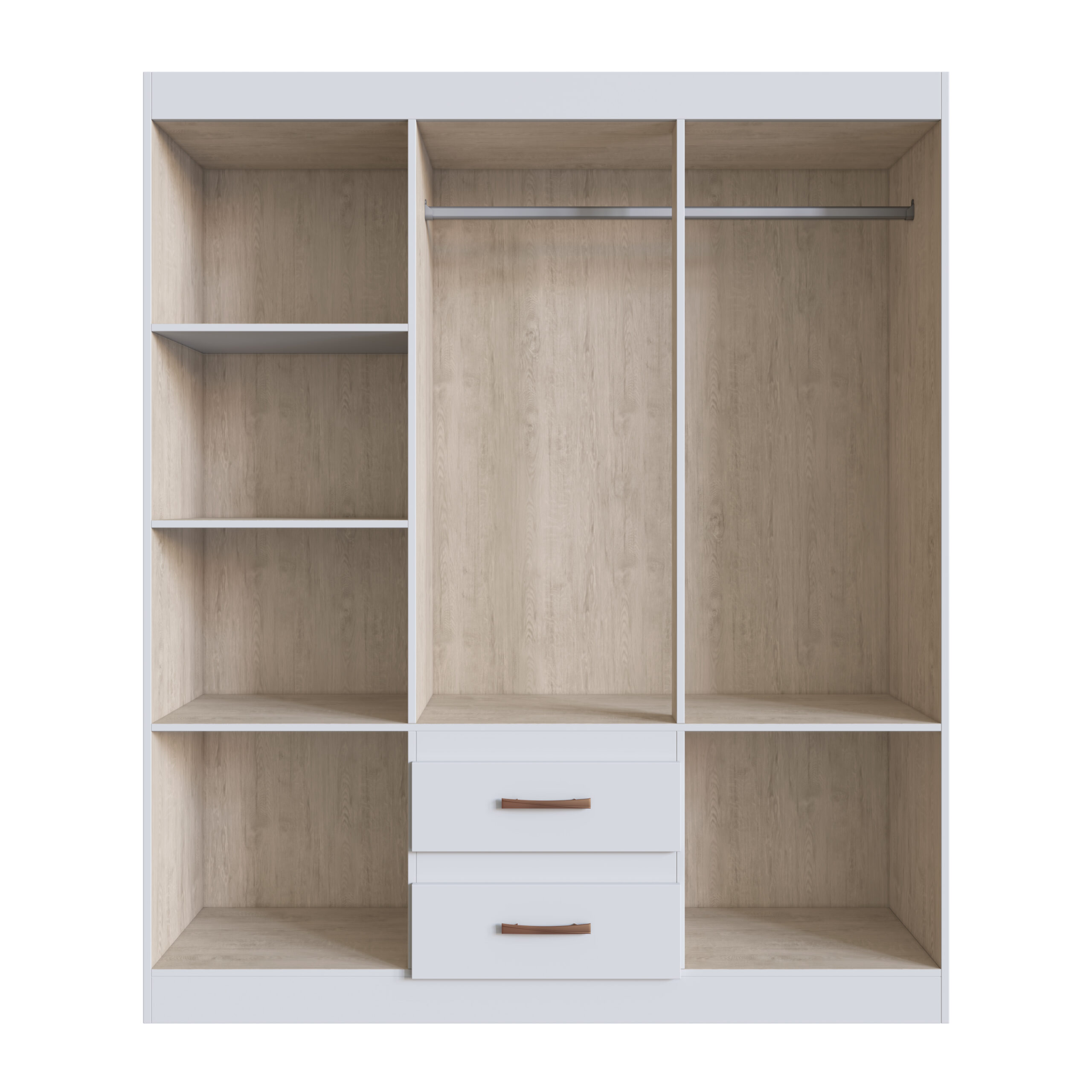 Roupeiro Texas 6P2G, Visualização Interna, da Doripel Moveis, Medidas: 1,83m Larg 1,56m Prof 0,40m Peso 65Kg - 2 Volumes - Estrutura 100% MDP, 6 Portas de Bater com Doibradiças Metálicas, 2 Gavetas Externas com Corrediças Metálicas, Colméioa Interna com Um Amplo Nicho com Cabideiro de Madeira e Mais Cinco Nichos Menores para Calçados, Roupas e Objetos Pessoais. Puxadores Plásticos de PVC na Côr Cobre e Acabamento em Pintura UV Semi-Brilho.