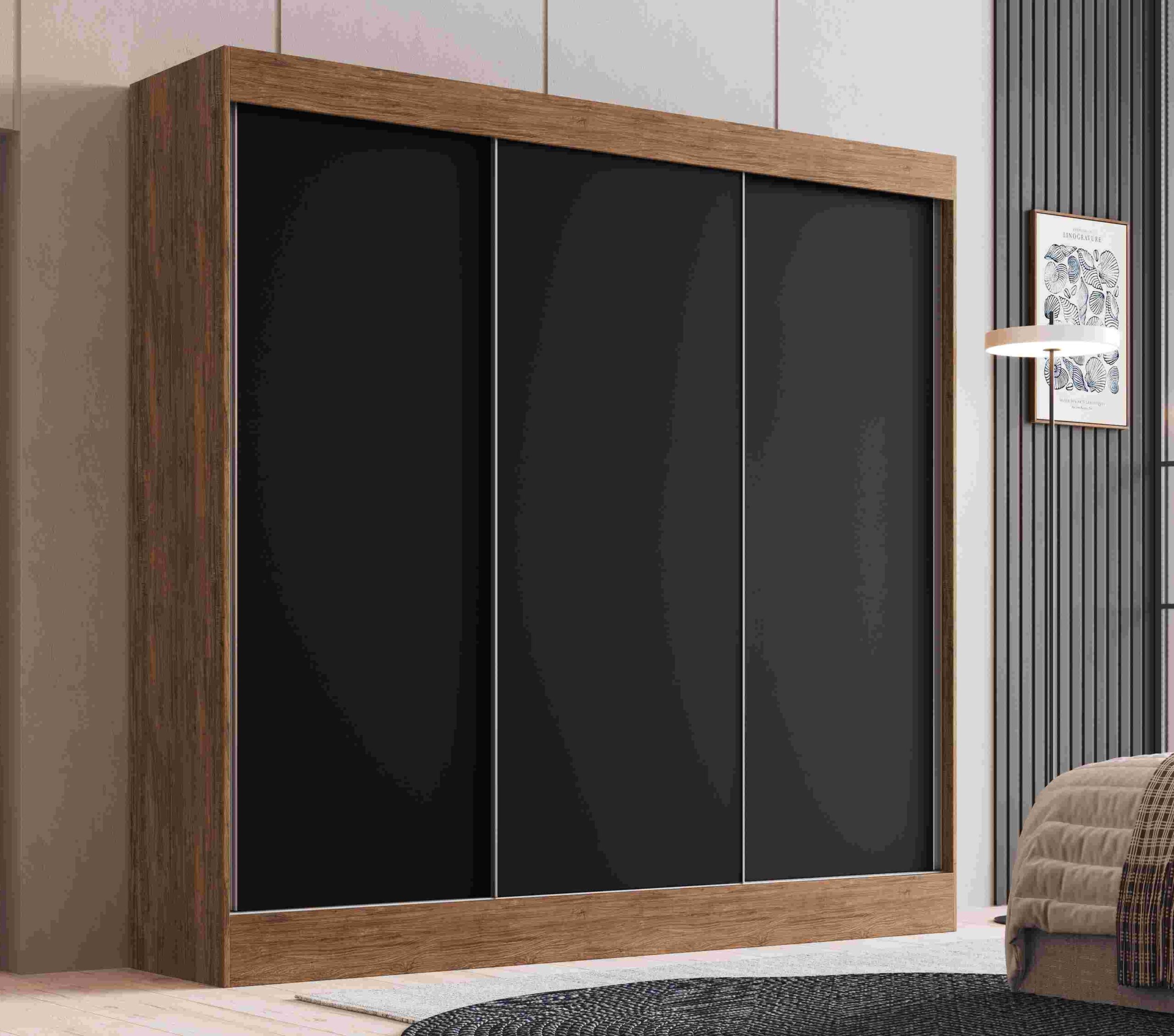 Disponível - 893332.Roupeiro Michigan 3P4G com Espelho Castanho.Preto Doripel