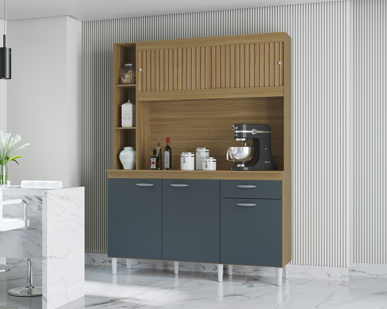 » Indisponível - A883.Kit Cozinha Duda 140 5P1G Damasco Ripado 3D.Cinza Poquema