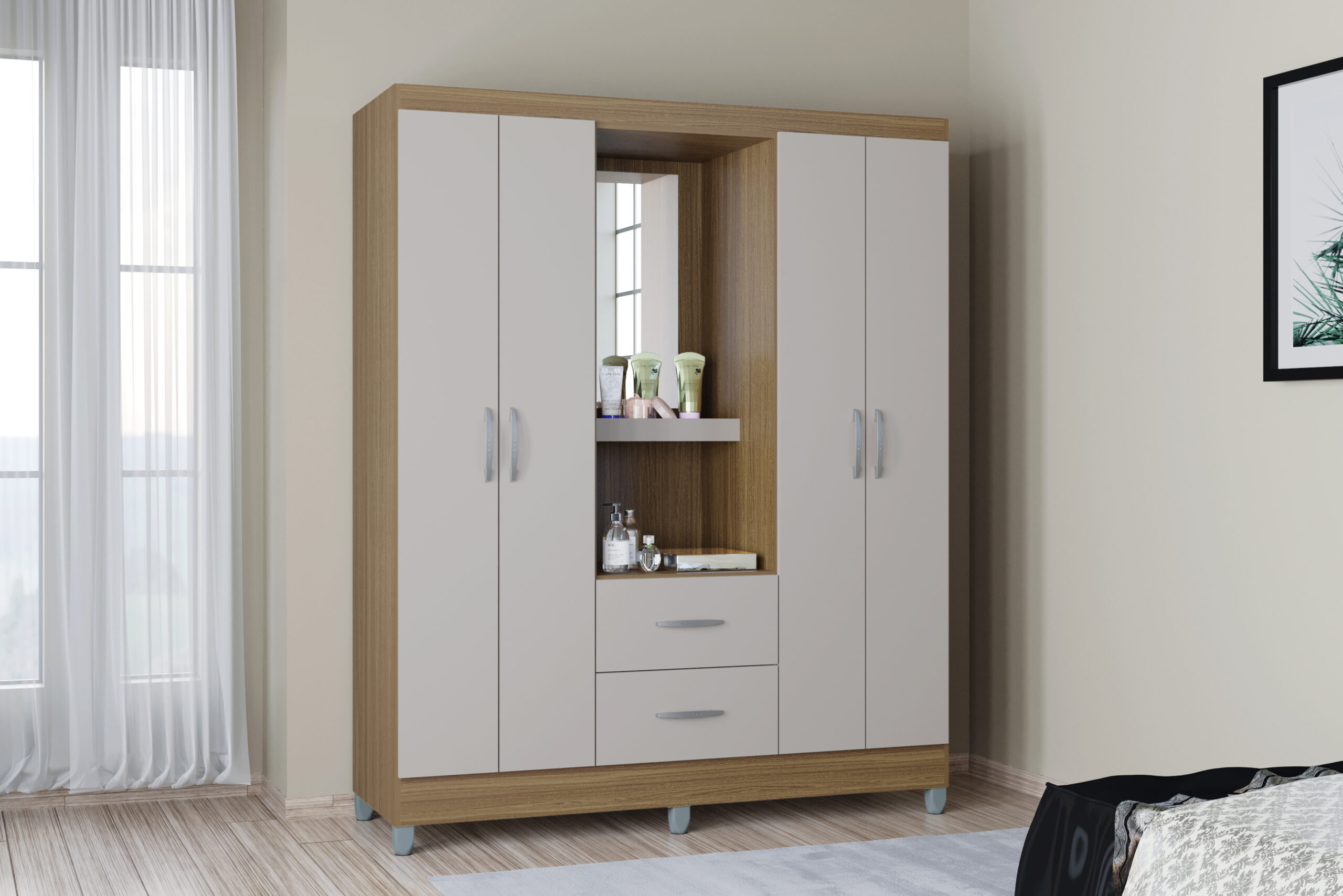 A966.Roupeiro Capelinha Cordoba 4P2G Cast.Off White Poquema