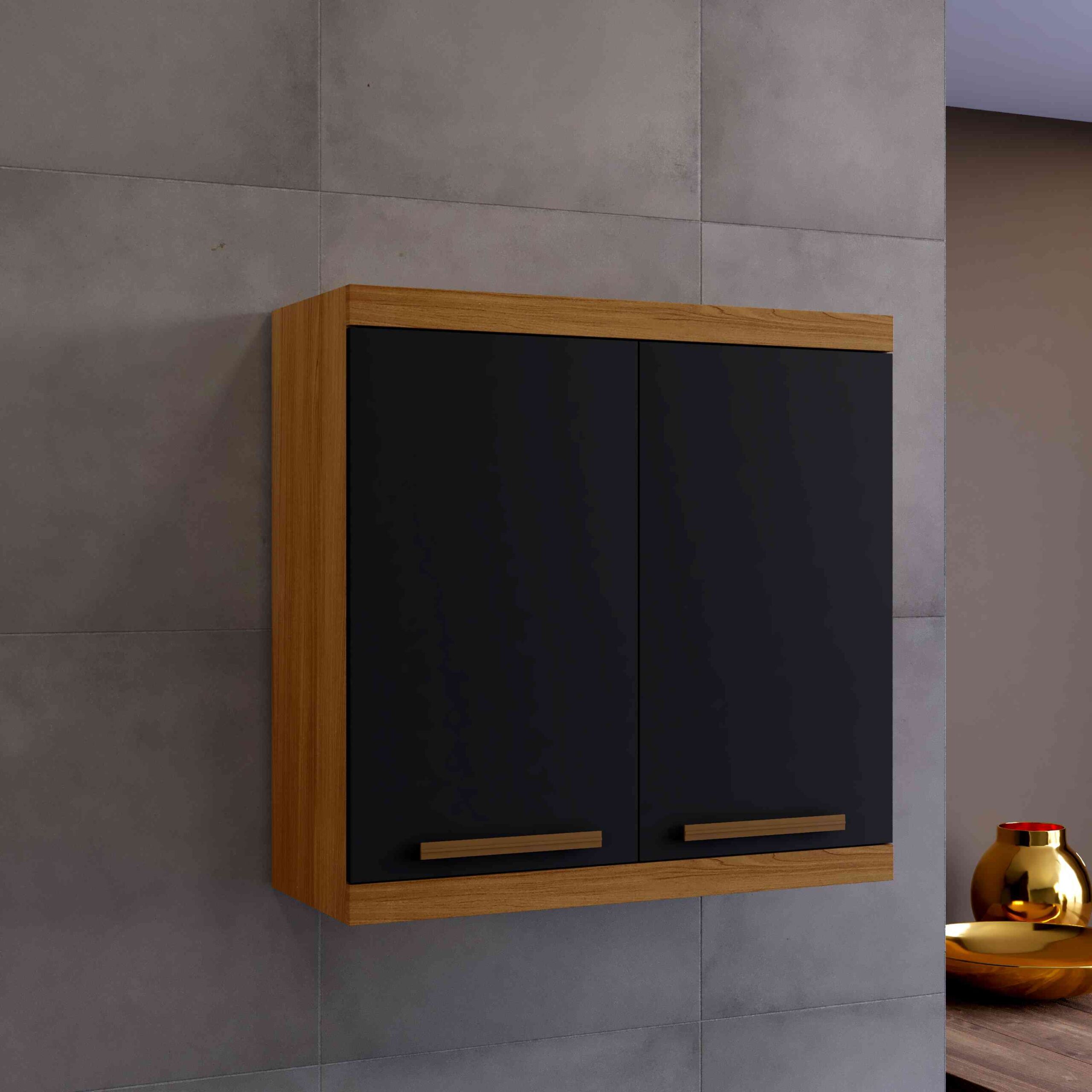 Armário Aéreo Gold, Côr Freijó/Grafite, da Arte Móveis, Medidas:> Alt 0,78m Larg 0,80m Prof 0,32m, Estrutura MDP/MDF, 2 Portas de Bater com Dobradiças Metálicas, 1 Prateleira Interna e Puxador PVC Metalizado.
