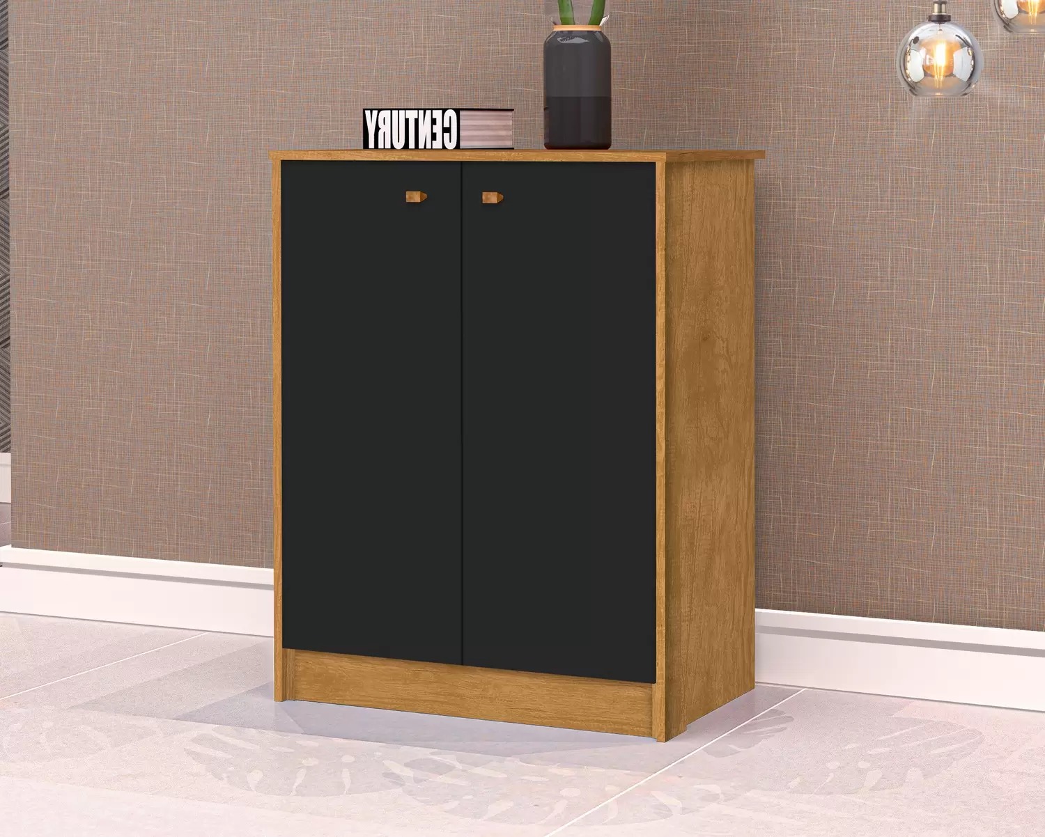 Balcao Office, Côr: Nature/Preto, da J&A Móveis, Medidas; Alt 0,75m Larg 0,60m Prof 0,32m Peso 12,50Kg - 1 Volume - Estruruta 100% MD, 2 Portas de Bater com Dobradiças Metálicas, 1 Prateleira Interna, Puxadores de Madeira, Acabamento em Pintura UV Brilho.