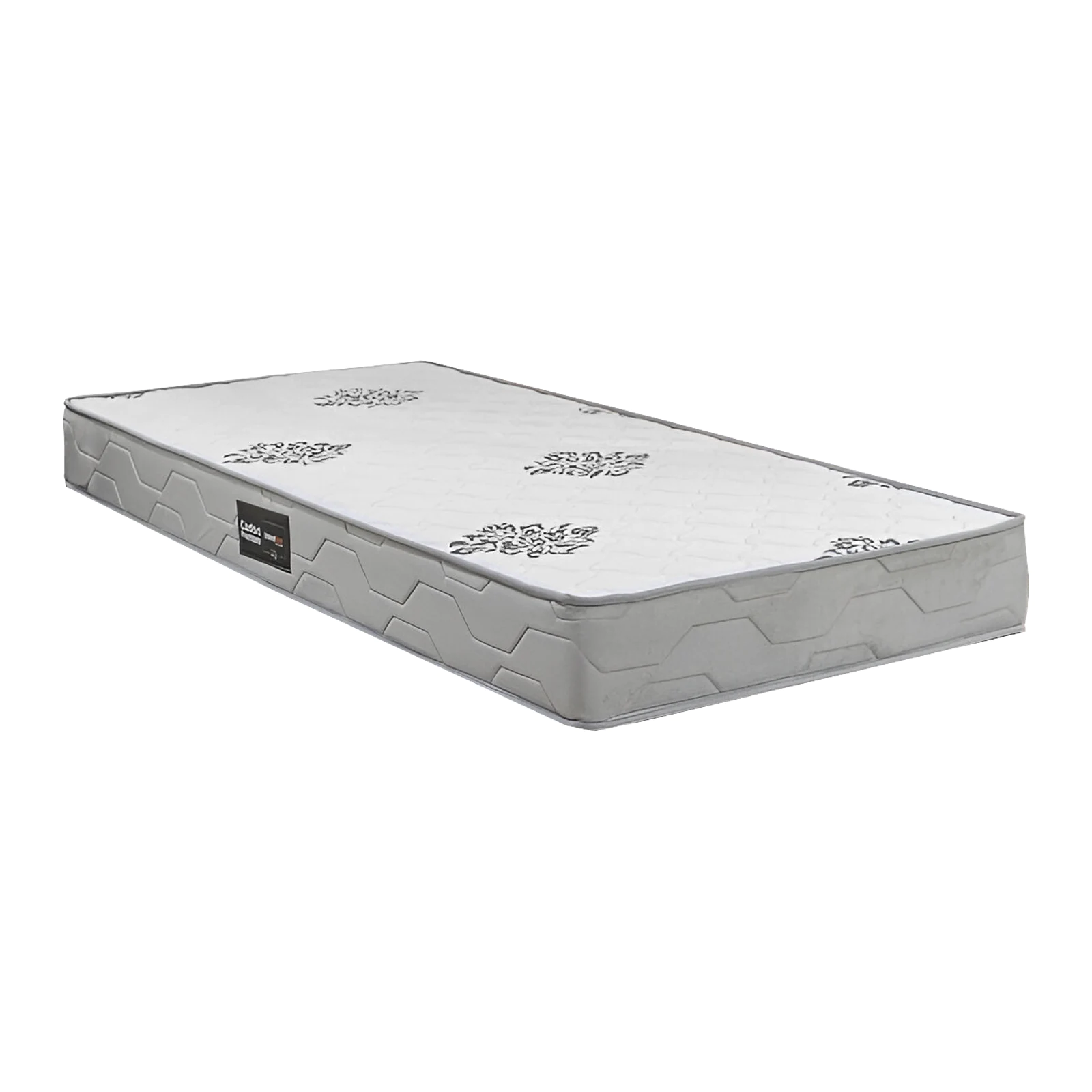 Colchão Solteiro Confort Premium, da Inovaflex Colchões. Medidas: Altura 0,18m, Largura 0,88m, Profundidade 1,88m. Estrutura em EPS de 11cm, associada a espuma certificada D28. Revestimento em malha 180g/m² 100% poliéster, tampo com bordado contínuo e laterais em veludo cinza. Fundo em tecido antiderrapante que proporciona mais segurança. Nível de conforto extra firme, com suporte recomendado para até 120kg por pessoa.
