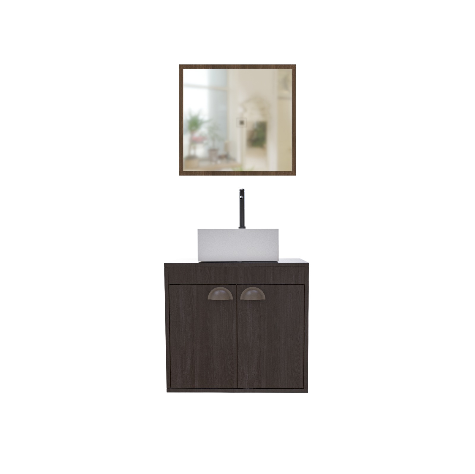 Conjunto Arcturo, Côr Munique/Munique, da Cerocha, Medidas: Espelharia: Alt: 0,36m Larg 0,38m Prof 0,012m Peso 2,6Kg - Gabinete: Alt 0,465m Larg 0,35m Pof 0,51m Peso 10,7Kg - 1 Volume - Estrutura 100% MDF, 2 Portas de Bater com Dobradiças Metálicas, Lavatório em Mármore Sintético com Tecnologia BMC, Puxadores ABS em Concha. Acabamento em Pintura UV Fosco ou Semi-Brilho. OBSERVAÇÃO: NÃO ACOMPANHA TORNEIRA.