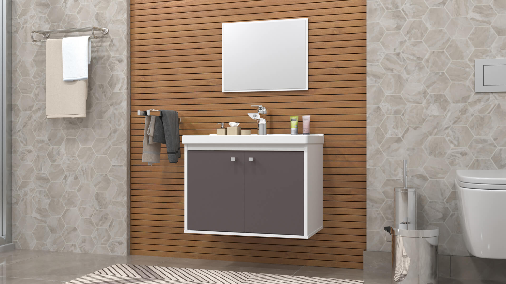 Conjunto Aster (Gabinete + Espelho), Côr Branco/Gianduia, da Cerocha, Medidas: Gabinete: Alt 0,47m Larg 0,51 Prof 0,315m - Espelharia: Alt 0,36m Larg 0,38m Prof 0,012m, Estruruta 100% MDF, 2 Portas de Bater com Dobradiças de 26mm, Puxador em ABS Metalizado, Lavatório em Mármore Sintético com Tecnologia BMC, mais Resistente e mais Leve. Espelharia: Painel + Espelho. (Não Acompanha Torneira).