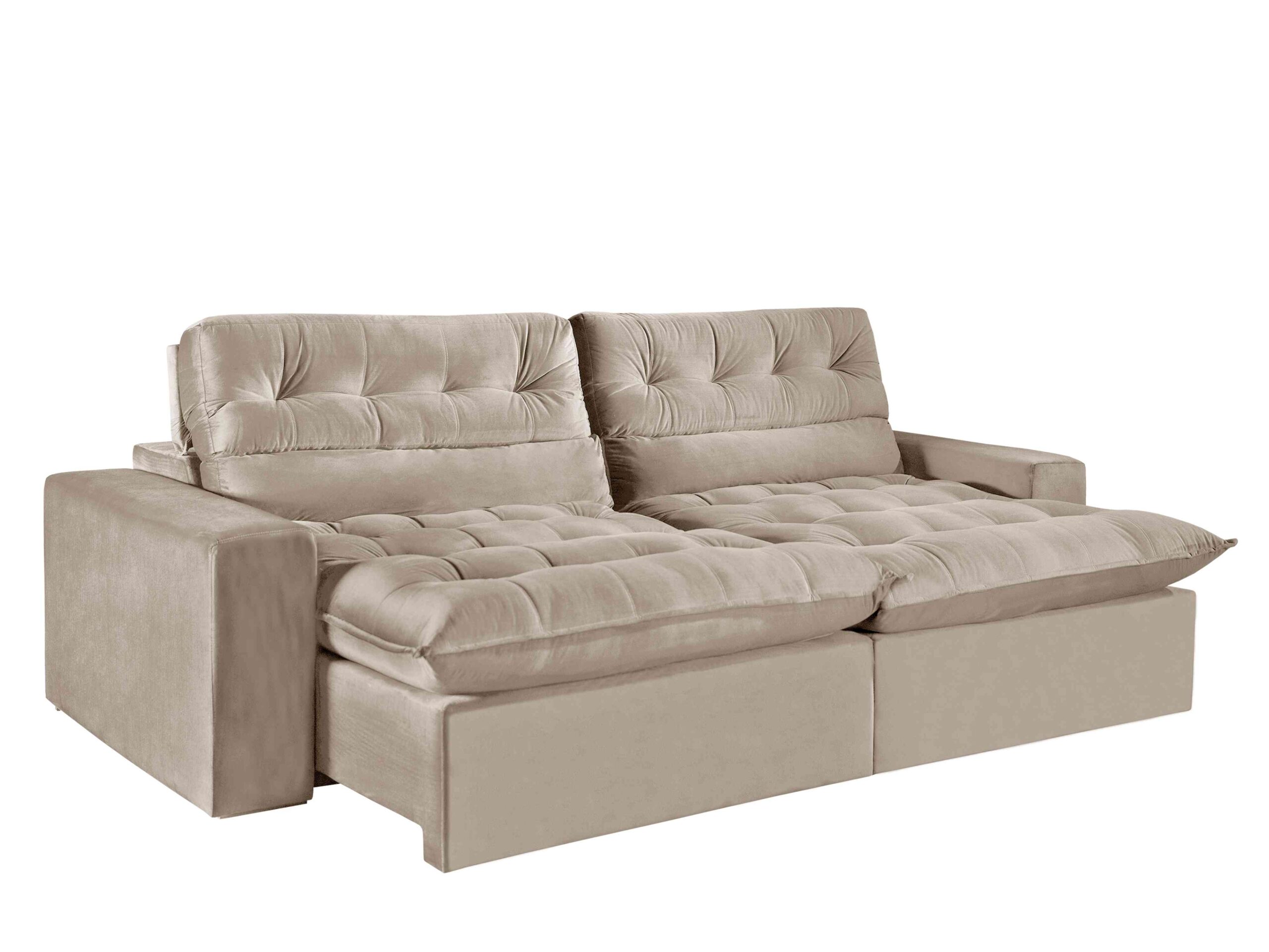 Estofado Retrátil Reclinável Colorado, Tecido: Veludo Jolie, Côr: Capuccino, da Idealle, Medidas: 2 Módulos: Alt 1,15 Larg 0,90m Prof Fech 1,20m Prof Aberto 1,80m, Braço 0,25m - Estrutura de Madeira, Blindagem nos Rodapés, Caixa Traseira e Parte Superior, Encosto Reclinável com 4 Estágios, Sistema de Catraca Blindada de Encaixe, Assento em Fibras com Percintas Elásticas e Molas, Estofamento em Espuma Selada de 18cm Alt, Pillow 18cm e Rineiras 100% Fibra Siliconada.