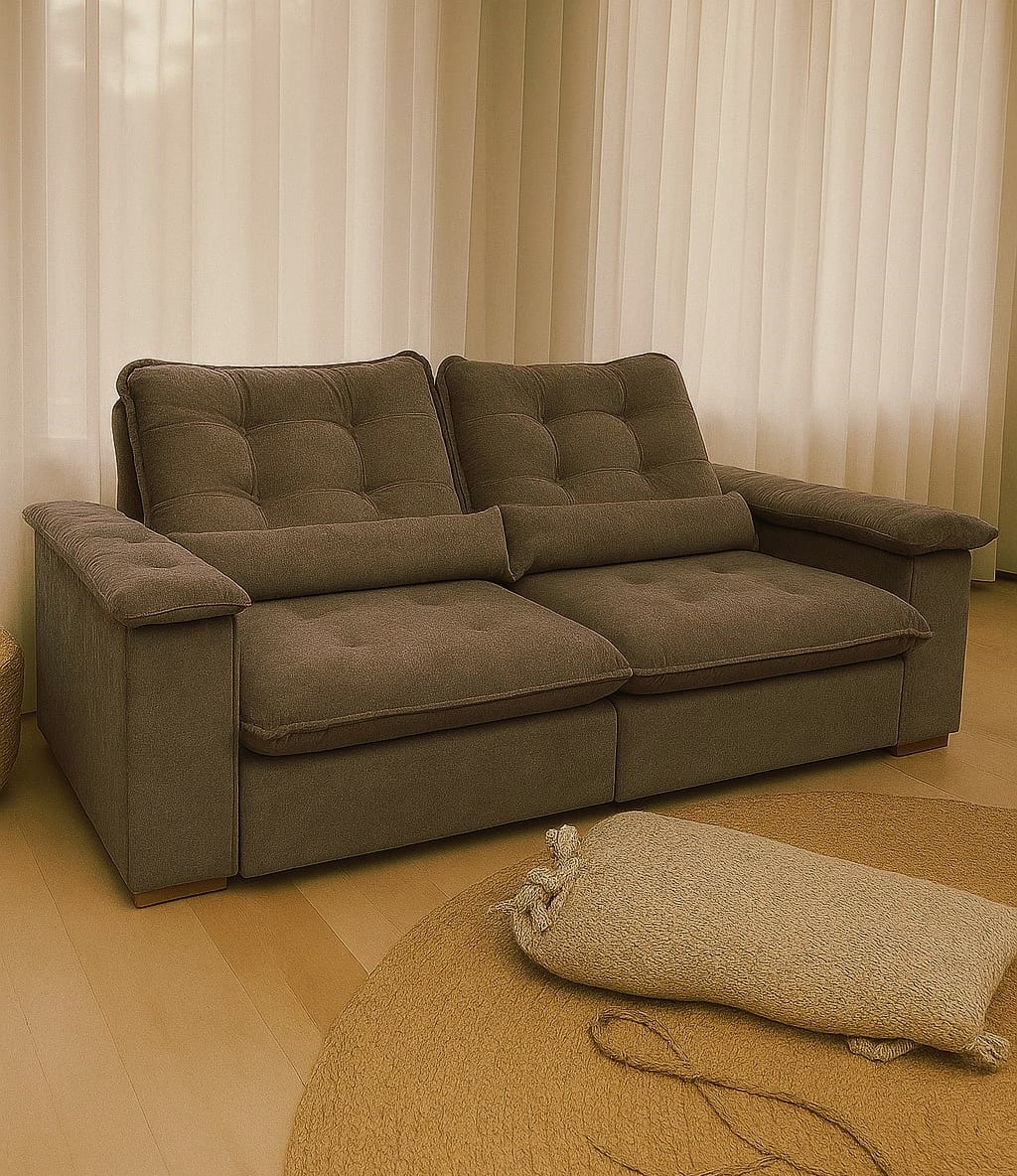Estofado Retrátil Reclinavel Gold 230, Tecido Veludo Inca, Côr Capuccino 02, da Diviminas, Alt 1,70m Larg 2 x Módulos 1,15m ( Assentop 0,90m + Braço 0,25) Prof Fechado 1,20m Prof Aberto 1,70m - 2 Volumes - Estrutura 100% Madeira Maciça de Eucalipto, Assento Estofado com Espuma Certificada D28 com Pillow Top 25cm, Percintas Italianas e Molas Espirais de Aço Carbono de 2mm. Encosto, Almofadas dos Braços e Rineiras com Estofamento em Fibras Siliconadas 100% Poliéster, Catraca de Aço Blindada com 3 Posições de Reclive, Pés de Madeira e Rodízios de Silicone. Suporte para até 130Kg por Assento.