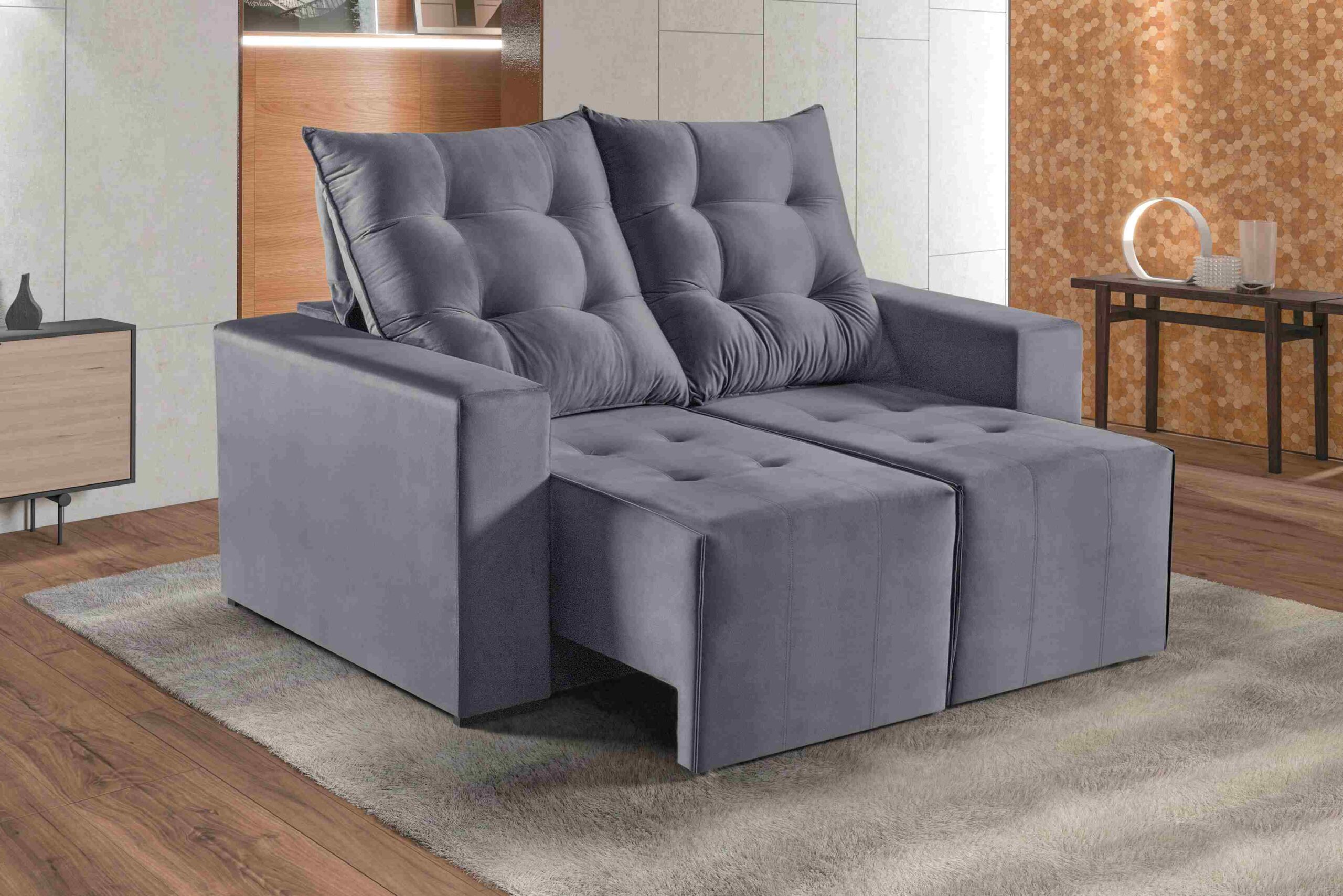Estofado Retrátil Reclinável Itaguai 160, Tecido: Veludo Inca, Côr Grafite 10, da Idealle: Medidas: 2 Módulos: Alt 1,00m Larg: 2 x 0,60m + 0,20m Prof Fechado 1,00m Prof Aberto: 1,40m - Estrutura 100% Madeira Maciça de Eucalipto, Nas Junções são Utilizados Grampos e Parafusos com Porca Borboleta Galvanizados. Estofamento do Assento em Espuma D28 com 5cm Altura, Sistema de Molas Espirais e Percintas Elásticas Fixadas Mecanicamente, Encosto Reclinável em 4 Estágios, com sistema de Catraca de Encaixa, Almofadas com Enchimento de Fibras Mistas, Braços Parafusados com Fácil Sistema de Desmontagem, Revestimento em Veludo Inca e Pés de Madeira, com Acabamento em Veniz Acetinado.