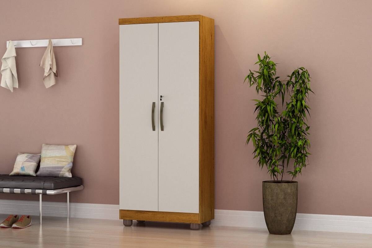 Multiuso Toronto, Côr Cinamomo/Off White, da Nyne Móveis, Medidas: Alt 1,90m Larg 0,62m Prof 0,38m Peso 45Kg Peso 40Kg - 1 Volume - 2 Portas de Bater com Dobradiças Metálicas e Chaves, 6 Nichos Internos Divididos por 5 Prateleiras, Puxadores ABS e Pés Plásticos de PVC. Acabamento em Pintura UV Semi-Brilho.