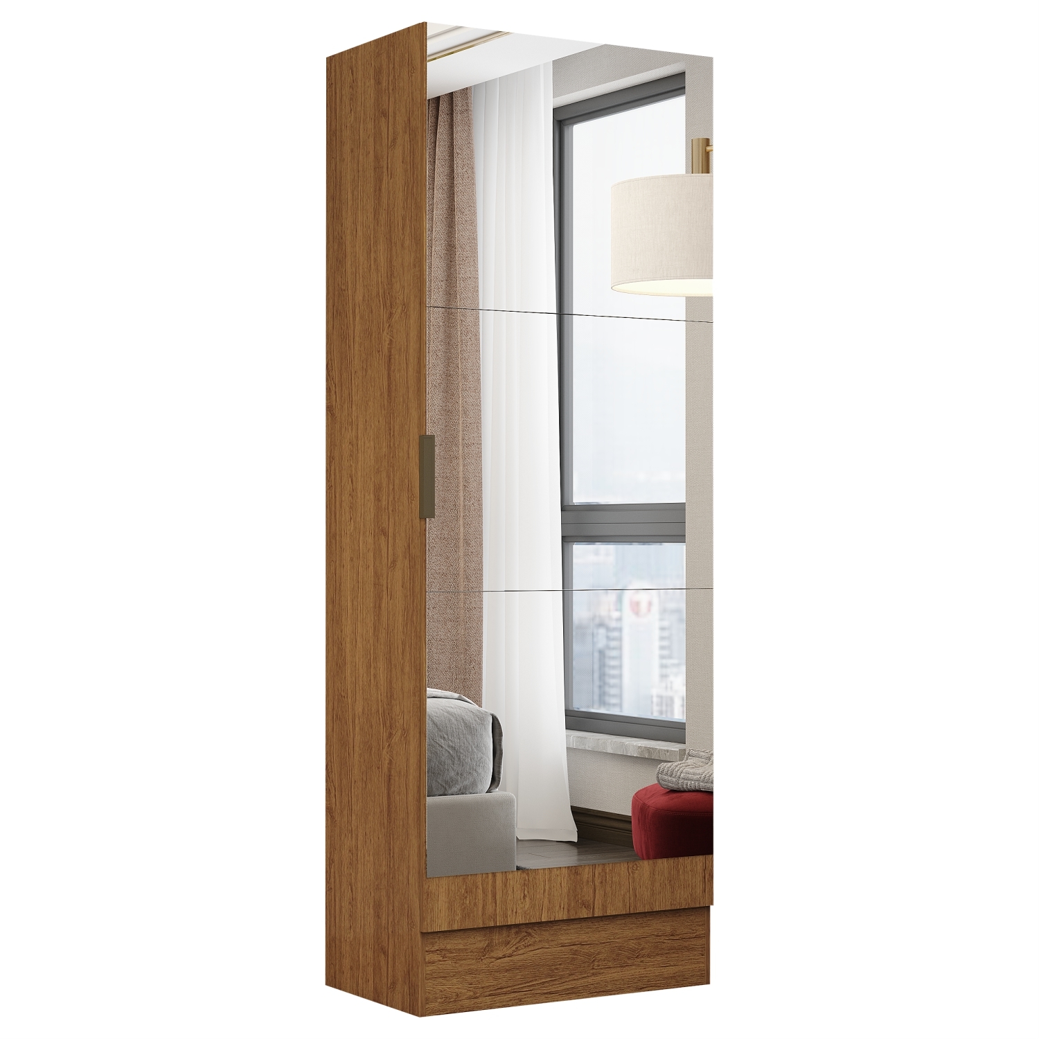 Sapateira Multiuso Maricá 1 Porta com Espelhos, Côr Freijó/Freijó, da Carioca Móveis, Medidas: Alt 1,80m Larg 0,54m Prof 0,34m Peso 36,2Kg - 2 Volumes - Estrutura 100% MDP 12mm, 1 Porta de Bater com Dobradiças Metálicas de Pressão, 5 Nichos Internos de 0,315cm x 0,516cm, Divididos por 4 Prateleira, Puxador de Alumíno Escovado, Sapatas Plásticas de PVC e Acabamento em Pintura UV Semi-Brilho.