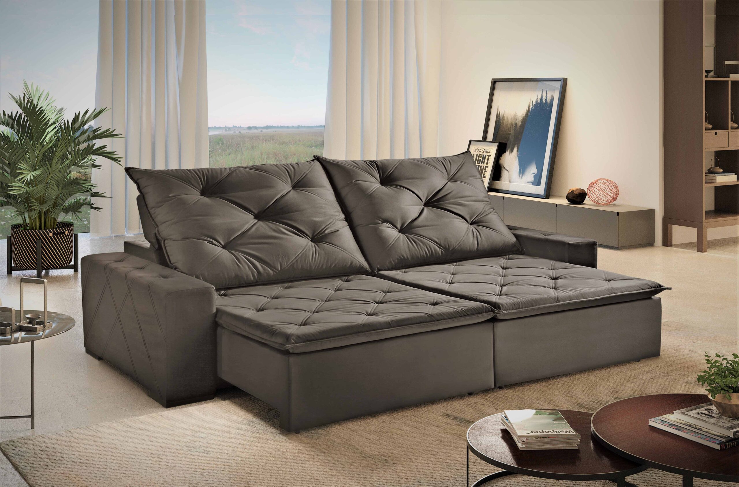 Sofá Retrátil/Reclinável Jeribá, em Veludo, Côr Marrom, Innove Estofados, Medidas: Alt 1,10m Larg 2,50m (2 Mod 1,00m + Braço 0,25m) Prof Fechado 1,20m Prof Aberto 1,80m, Estrutura de Eucalipto, Molas e Percintas no Assento e Pillow Top 9cm, Espuma Elástica + Espuma D28, 100% Fibra Siliconado no Encosto, Braços com Detalhes em Costura, Mecanismo Retrátil em Metal e Encosto Relinável em 5 Estágios.